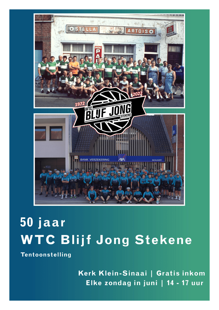 Om het 50 jarig bestaan van onze wielerclub te vieren, organizeren we een tentoonstelling in de kerk van Klein – Sinaai. De tentoonstelling is te bezichtigen elke zondag in juni tussen 14.00 en 17.00 uur. We hopen U te mogen verwelkomen tijdens een bezoekje.