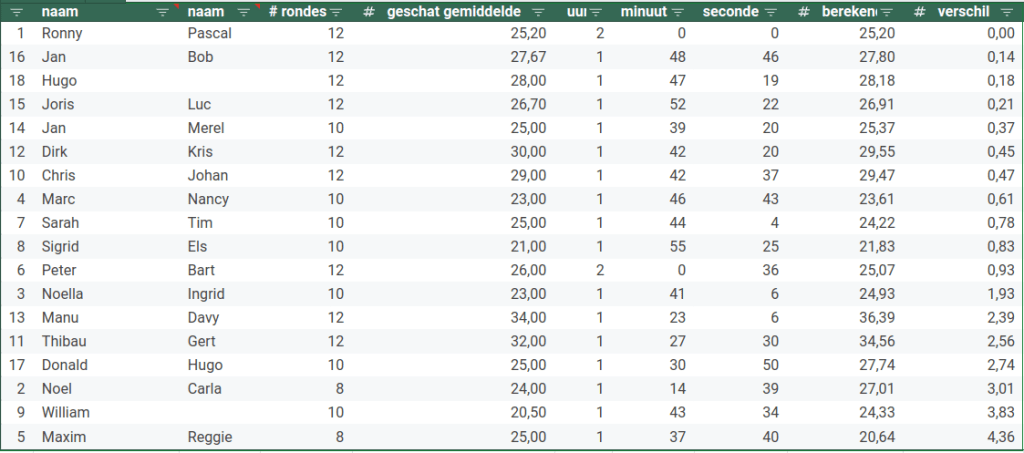 Elk jaar wordt de lat hoger gelegd en bewijzen de leden hoe goed ze hun snelheid kunnen in schatten. Met 7 teams die minder dan 0.5 km/u naast hun geschatte gemiddelde zaten.