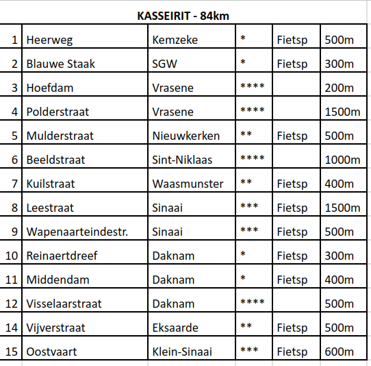| zon 13/4 | 8.30 | Kasseirit Kasseistroken | Wim V | 80 km | gpx |