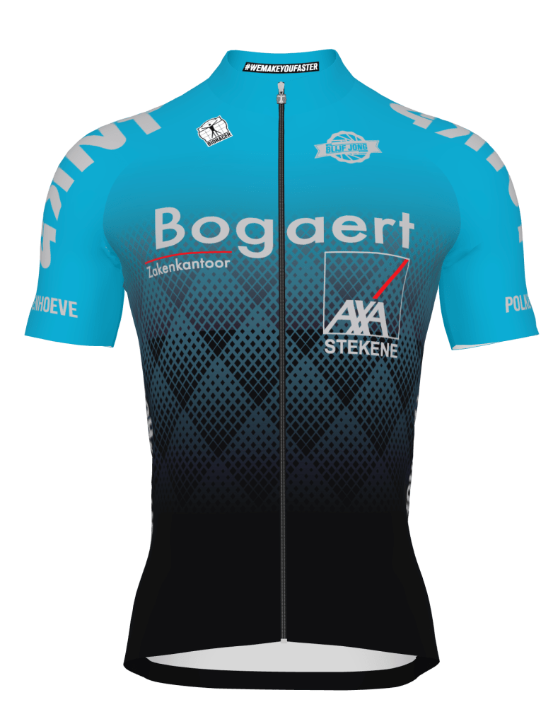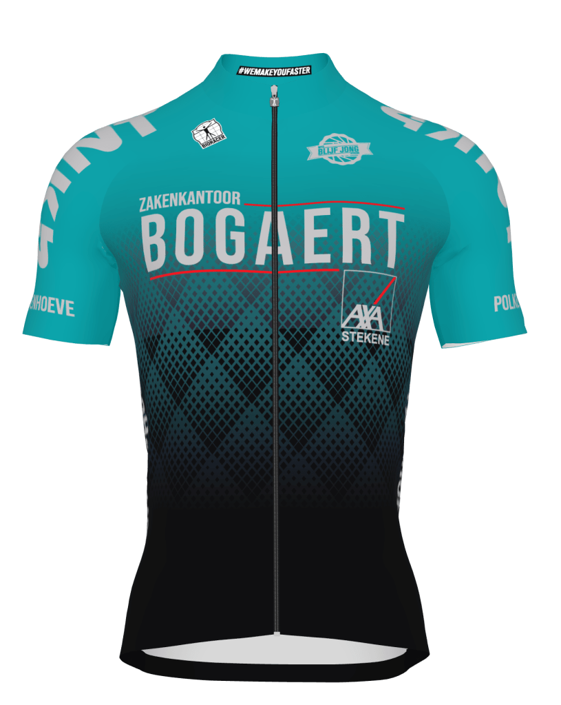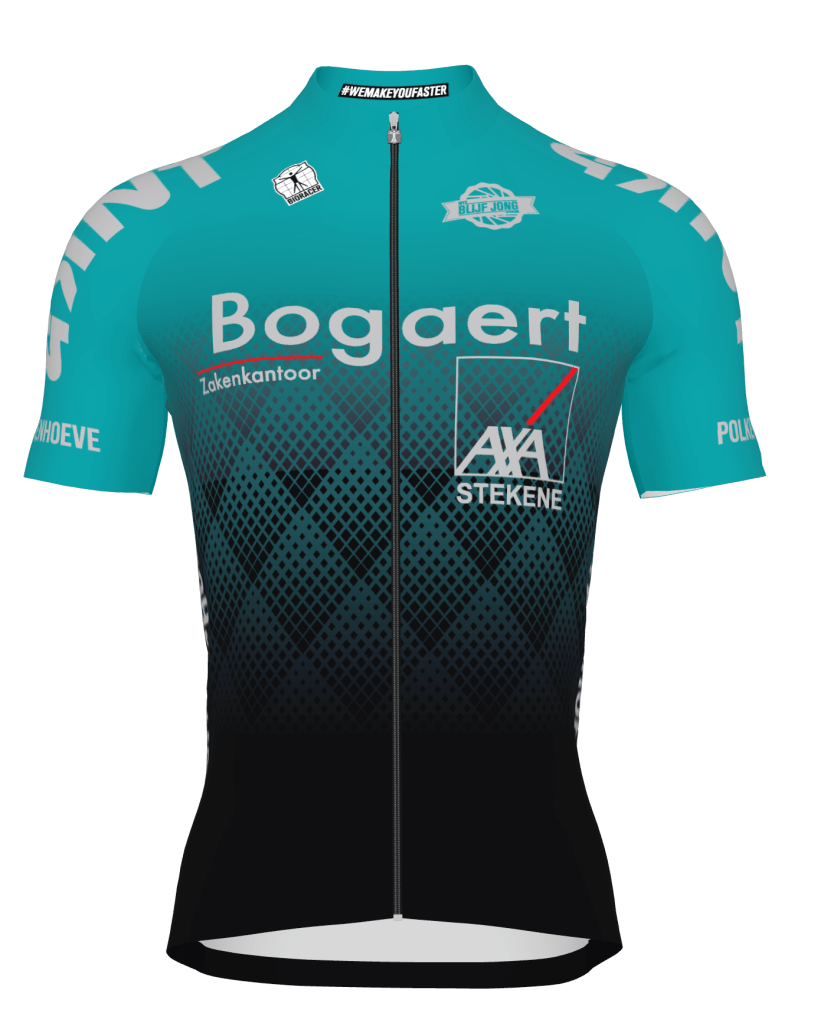 ontwerp 3: bogaert logo in ander bioracer lettertype (zoals getoond op vorige vergadering) + stekene eronder. In in het blauw/groen dat we op vorige vergadering gekozen hadden:
